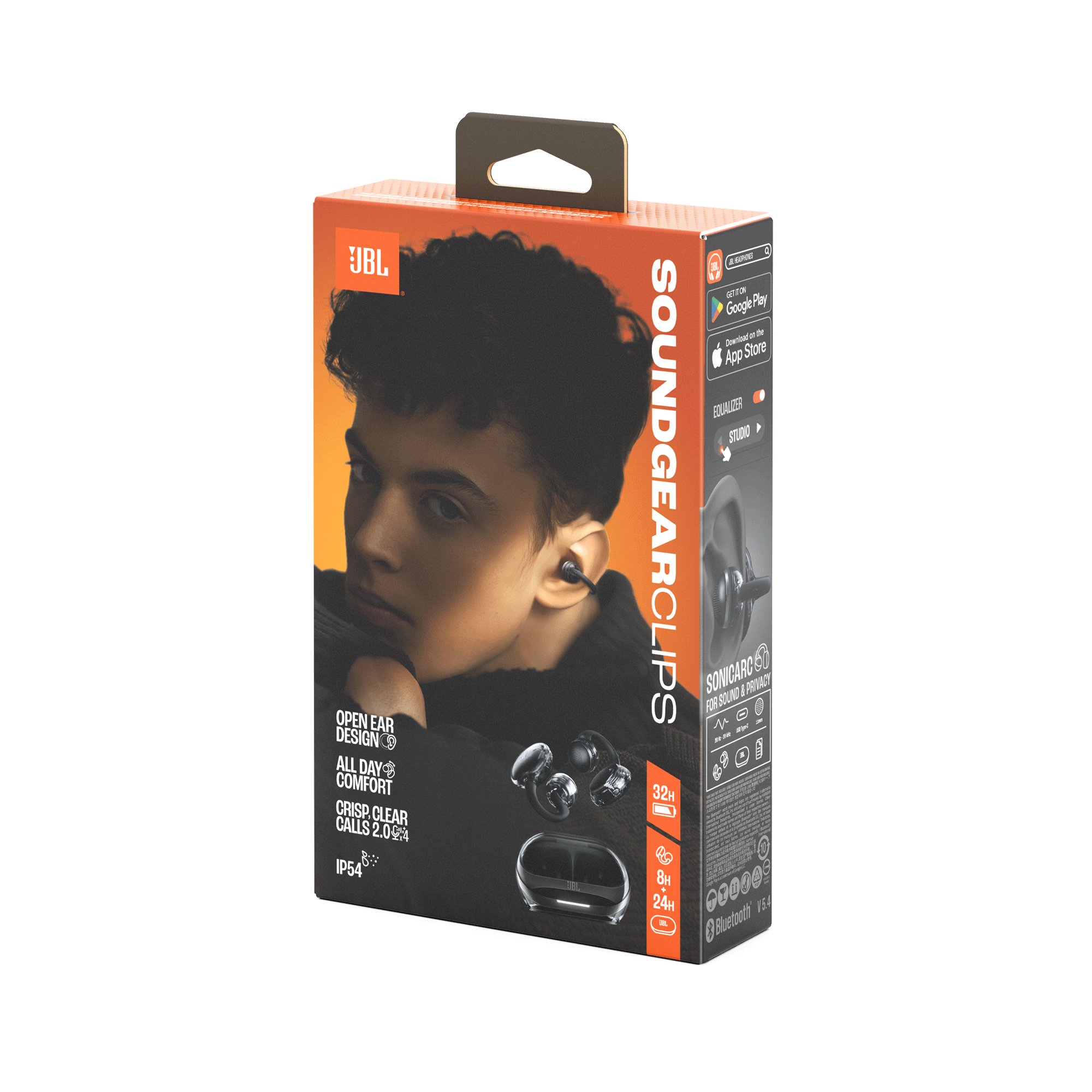 Les écouteurs à oreilles ouvertes JBL Soundgear Clips offrent un excellent son JBL, sans bloquer les sons environnants. Leur confort et leur stabilité tout au long de la journée se démarquent, tout comme leur look tendance dans des coloris à la pointe de la mode et des finitions translucides de qualité supérieure. La technologie JBL OpenSound avec conduction aérienne et design SonicArc pour une fuite sonore minimale, ainsi que les performances des graves améliorées vous offrent des basses toujours rondes et percutantes sans distorsion, uniquement pour vos oreilles. De plus, la technologie à quatre microphones et notre algorithme exclusif formé par l’IA pour la réduction de bruit garantissent toujours un son excellent, même par temps venteux. Et si de petites gouttes arrivent, les JBL Soundgear Clips bénéficient d’une certification IP54. Utilisez l’application JBL Headphones pour personnaliser le son de vos appels. Les JBL Soundgear Clips sont une icône portable en devenir.